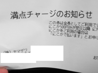 500ポイントが貯まった際は、レジから上記のようなお知らせのレシートが。