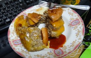 すぐに台所に向かい、絶品タワーチーズバーガーを4等分し、ピクルスとケチャップも皿に載せて自分の部屋へ。