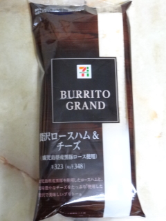 セブンイレブンで先月から売られるようになった新商品の「BURRITO GRAND 贅沢ロースハム&チーズ」。