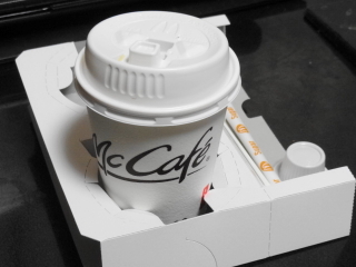 ホットコーヒーはこぼれないように、きちんと紙のドリンクホルダーに。