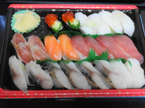 ご褒美に平禄寿司の持ち帰りを食べることに。