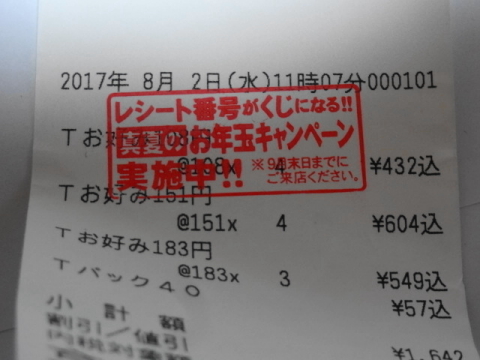 ハズレでもこのレシートがあれば100円引きになる良心的なキャンペーンで、何ともありがたいことです。