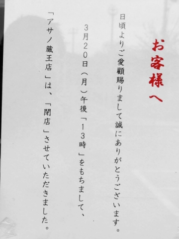 去年の6月にオープンしたスーパーASANOが閉店していました・・・・・・。
