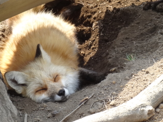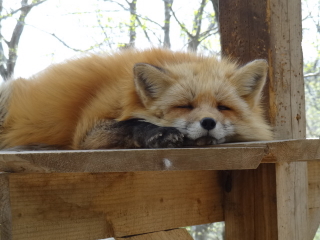 こうして寝ているキツネたちにカメラを向けつつ、カップルたちと同じ場所にならないように気を配りながらしばらく山を歩き回り、最後はエサをあげることが出来る小屋へ。