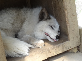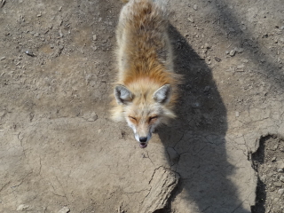 で、今回は放し飼いのコーナーに行く前にスタッフさんにお願いしてキツネを触らせてもらうことを決めていました。